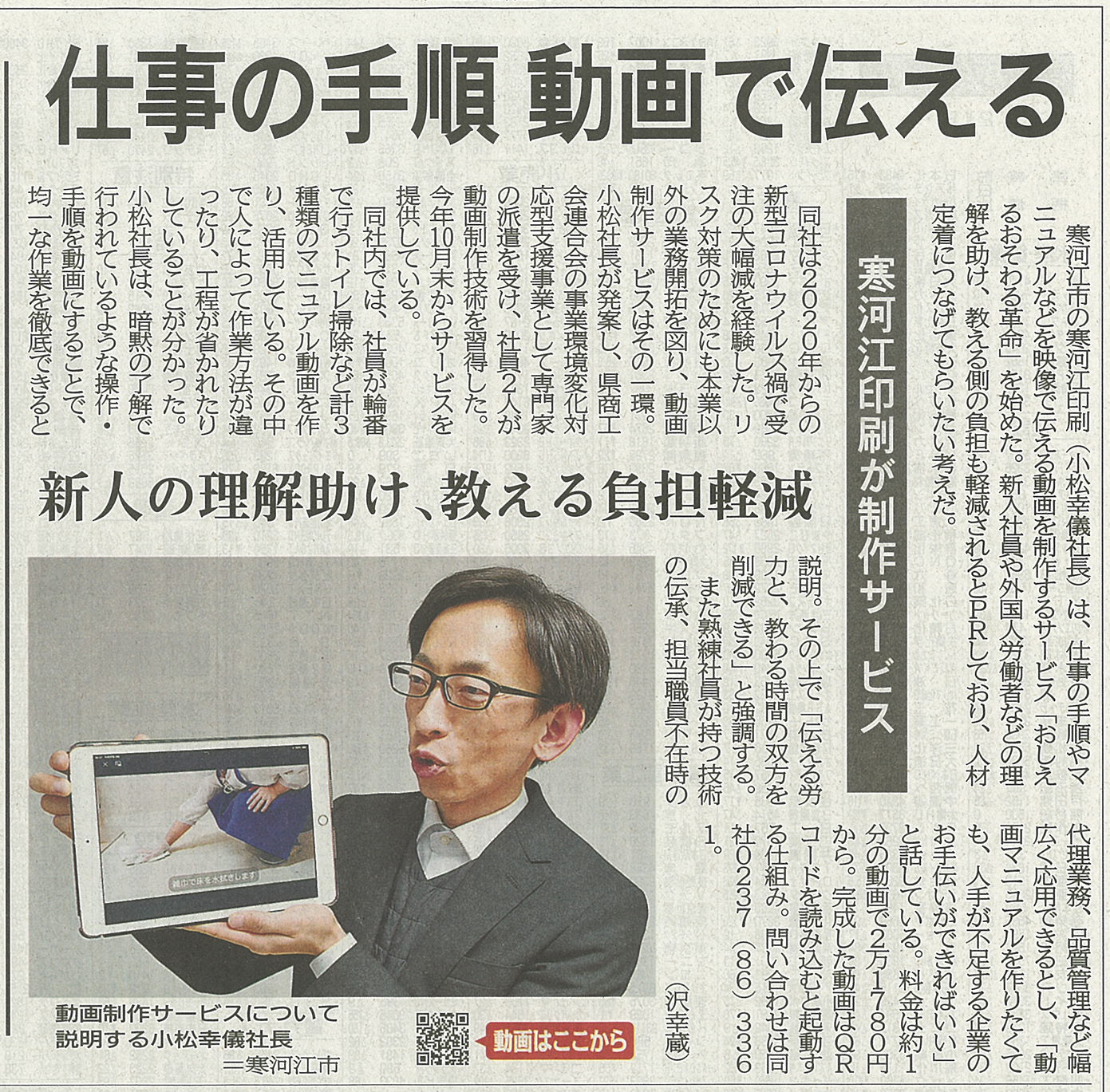 このたび、当社のマニュアル動画作成サービス「おしえるおそわる革命」 が新聞に取り上げられました。
