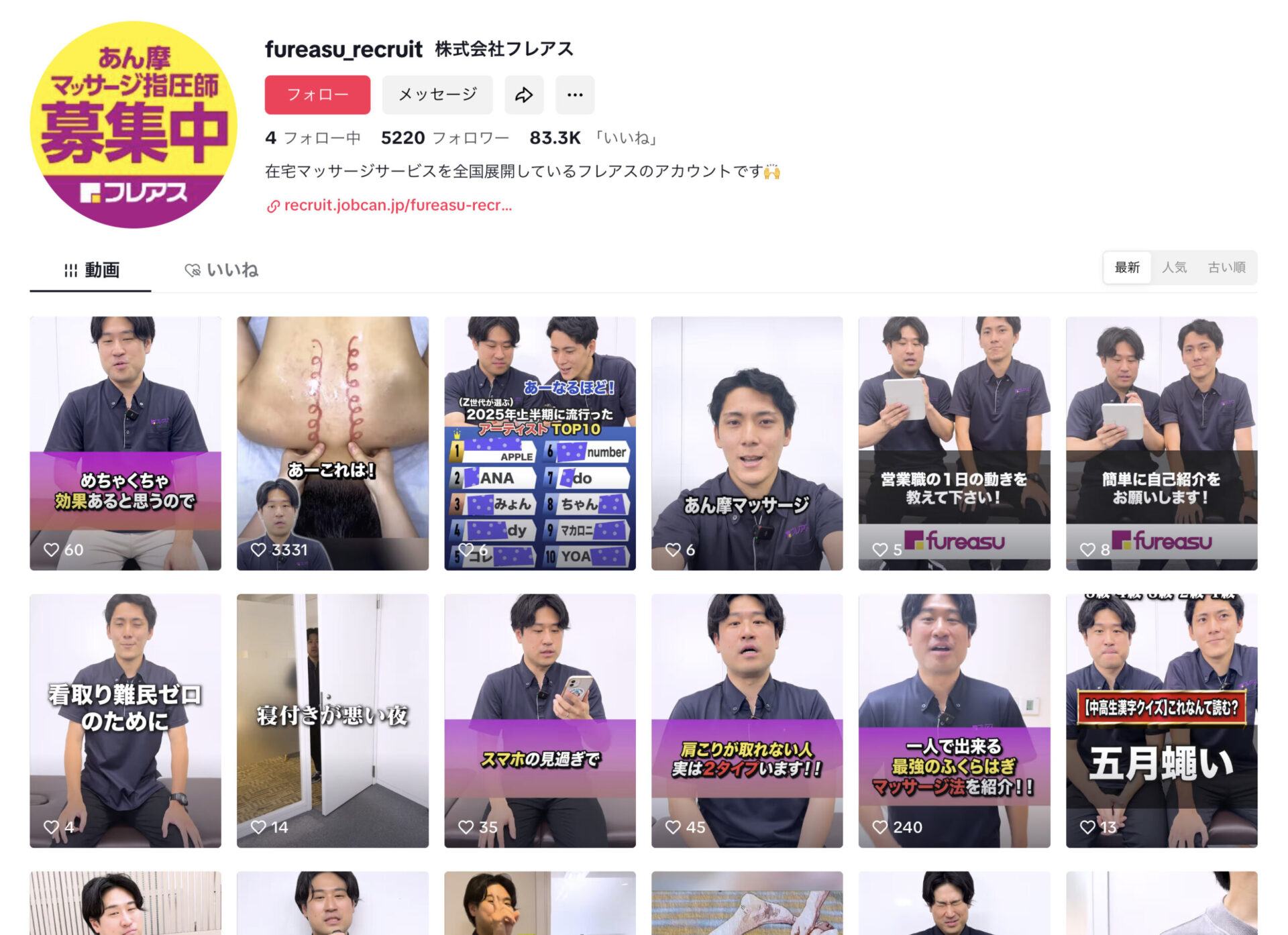 (SNSマーケティング、採用ブランディング、コンテンツ企画・制作)https://www.tiktok.com/@fureasu_recruit